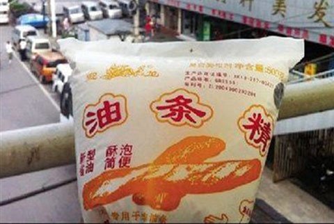 Trên bao bì ghi tác dụng của tinh quẩy là “làm quẩy nở hơn, tiết kiệm dầu rán và ngon hơn, nếu trộn nó vào thì 1 gói nửa kg tinh quẩy giúp làm được một bao 25 kg bột mỳ”. Nhìn kỹ địa chỉ làm ra tinh quẩy thì phóng viên ngã ngửa: nơi sản xuất tinh quẩy là một nhà máy hóa chất ở Trùng Khánh.