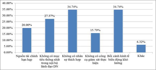 Chúng tôi muốn tái cấu trúc doanh nghiệp mình nhưng lại không có nhân sự thích hợp để thực hiện công việc đó. 37.74% các nhà quản lý doanh nghiệp chia sẻ rằng cản trở lớn nhất đối với doanh nghiệp khi ra quyết định về tái cấu trúc là sự thiếu hụt về nhân sự thích hợp. Bên cạnh đó, những biến động về kinh tế không được dự báo trước cũng làm các doanh nghiệp cẩn trọng hơn khi ra quyết định tái cấu trúc. Trở ngại tiếp theo chính là sự không thống nhất giữa các lãnh đạo trong doanh nghiệp về mục tiêu tái cấu trúc.
