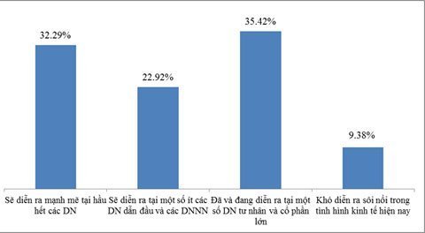 | Nhận định của DN về xu hướng tái cấu trúc của các DN Việt Nam. Nguồn: Khảo sát DN lớn và doanh nghiệp tăng trưởng, Vietnam Report.(DN được trả lời nhiều hơn 1 lựa chọn, do đó, tổng sẽ lớn hơn 100%) |