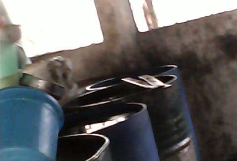 | Mỡ heo tại cơ sở của bà Hương sau khi chế biến được đựngvào những thùng phuy gỉ sét... |