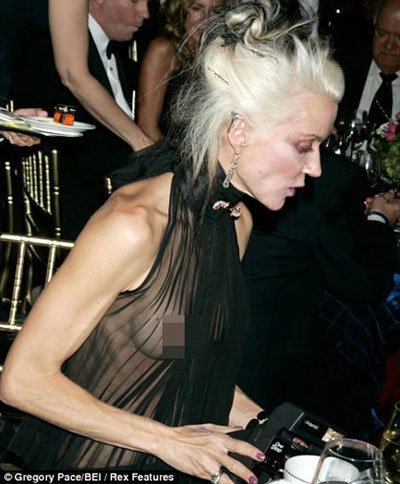 Nữ tỷ phú xinh đẹp 45 tuổi này từng gây xôn xao cánh săn ảnh với một vụ khoe ngực trần gây sốc. Không biết đây là sự vô tình hay cố ý mà chiếc áo voan đen xếp pli của Daphne mỏng manh đến mức nhìn xuyên thấu “cặp tuyết lê” trần không áo lót. Guinness xuất hiện nổi bật dưới ánh đèn dường như không thèm để ý đến rừng máy ảnh đang lia lịa nháy vào "phần nhạy cảm" của mình. Chiếc áo đã tố cáo cơ thể gầy gò và những chiếc xương sườn nhô ra từ phía sau lưng trần của bà.