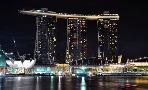 | Marina Bay Sands - tòa nhà hình chiếc thuyền ở trên cao tại Singapore |
