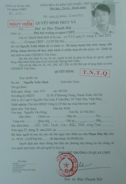 | Quyết định truy nã đặc biệt Nguyễn Tuấn Minh, Chủ tịch HĐQT Muaban24 |