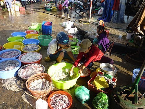 | Sơ chế mực trước khi bán cho khách tại khu vực chợ Hòa Bình, quận 5, TP.HCM (Ảnh: NLĐ) |