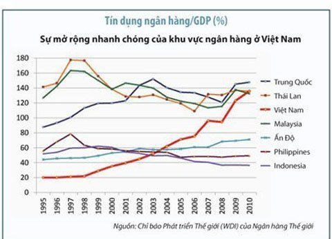Hệ thống ngân hàng thương mại Việt Nam đã có quá trình phát triển vượt bậc cả về số lượng các ngân hàng lẫn về tổng mức tín dụng trong những năm qua. Số ngân hàng thương mại cổ phần lên đến 84 ngân hàng năm 1997 và được sắp xếp lại còn 35 ngân hàng thương mại cổ phần tính đến ngày 15-6-2012 (nguồn: Ngân hàng Nhà nước), tỷ lệ tín dụng trên GDP đã từ 35% năm 2000 tăng vọt lên 125% năm 2010 (nguồn: Ngân hàng Thế giới), một tỷ lệ thuộc loại cao nhất khu vực.