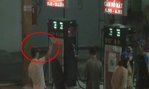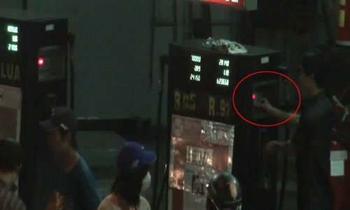 Một lúc sau, một thanh niên mặc áo đỏ, đi xe Jupiter MX ghé vào đổ xăng. Người này đưa năm ngón tay ra hiệu đổ 50.000 đồng xăng A92 (tương ứng với 2,11 lít). Nam nhân viên mặc áo đen, tóc hai mái bấm điều chỉnh số tiền và chỉ số xăng lần lượt tương ứng là 50.000 đồng và 2,11 lít. Khi thanh niên đổ xăng đang loay hoay cầm điện thoại, nhân viên mặc áo đen nhanh tay bấm nâng khống số tiền từ 40.000 đồng lên 50.000 đồng, trong khi chỉ số xăng hiển thị chỉ đến 1,69 lít. Khi khách hàng quay lại nhìn vào bảng điện tử, nam nhân viên này bấm chỉ số xăng, tiền về 0 và lấy 50.000 đồng.