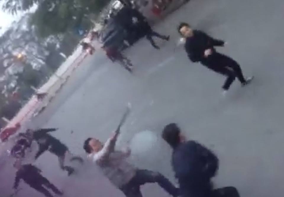 | Hình ảnh hai nhóm thanh niên hỗn chiến trên phố Trần Đại Nghĩa, Hà Nội - ảnh cắt từ clip |