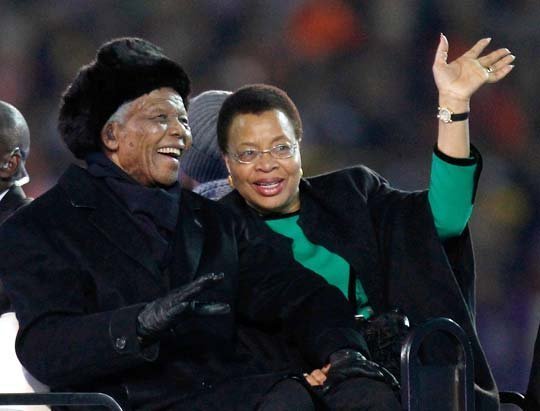 Ông Mandela và vợ, bà Graca Machel đang tiến tới sân vận động trước trận chung kết World Cup năm 2010 giữa Hà Lan và Tây Ban Nha tại Johannesburg. Đây là lần cuối cùng ông xuất hiện trước công chúng.
