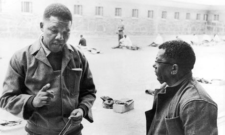 Nelson Mandela và Walter Sisulu tại sân nhà tù trên đảo Robben.