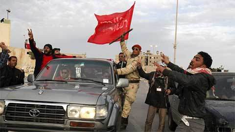 phố phía đông Libya, tuyên bố họ không ủng hộ Tổng thống Gaddafi nữa. (Ảnh: