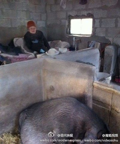 Ông Chen Shoutian, một nông dân ở huyện Guanyan, tỉnh Giang Tô cho biết mẹ ông cảm thấy rất vui vẻ khi chia sẻ phòng ngủ của mình với một con lợn nái nặng 200kg.