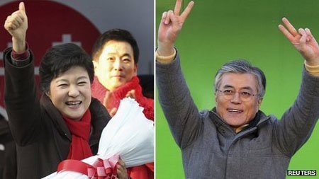 Các cuộc thăm dò công luận mới nhất trước bầu cử cho thấy bà Park (60 tuổi), con gái của cựu Tổng thống Park Chung-hee, đã dẫn trước ông Moon một chút.