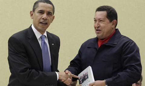 | Tổng thống Mỹ Barack Obama bắt tay Tổng thống Venezuela Hugo Chavez tại một hội nghị châu Mỹ năm 2009. (Ảnh: AP) |