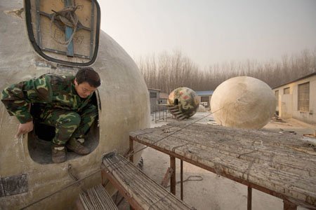 Bên trong quả cầu trú ẩn của Liu Qiyuan, một nông dân ở Trung Quốc.