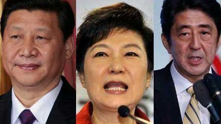 Từ trái qua: Tổng bí thư Trung Quốc Tập Cận Bình, Tổng thống đắc cử Hàn Quốc Park Geun-hye và Thủ tướng kế tiếp của Nhật Shinzo Abe |
