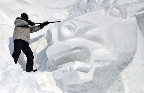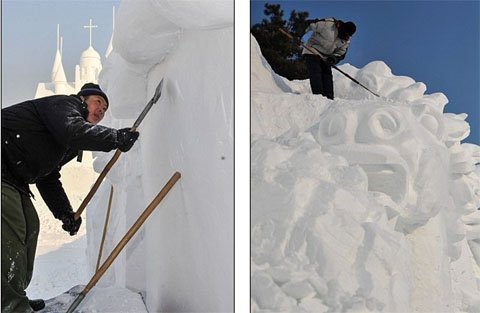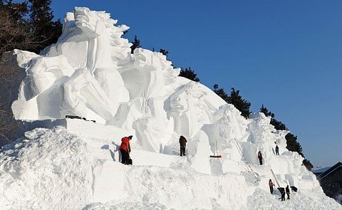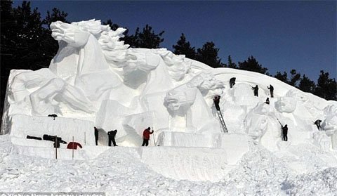 Những tác phẩm điêu khắc trên tuyết này thực sự là kỳ quan mùa đông khi được 'chế tác' trực tiếp trên các ụ tuyết khổng lồ.