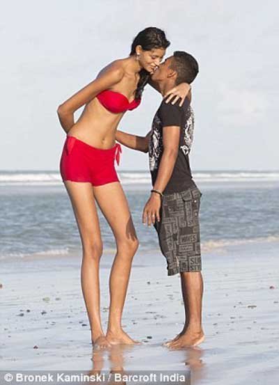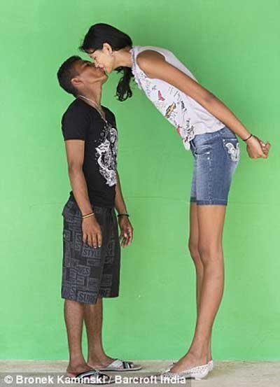 Với chiều cao 2,06m, Elisany da Cruz Silva luôn phải cúi xuống để có một nụ hôn lãng mạn với bạn trai, anh Francinaldo da Silva Carvalho, người thấp hơn cô gần 50cm.