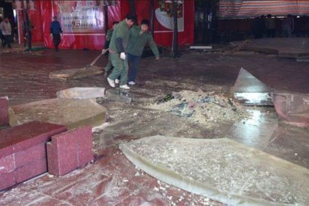 Bể cá này là một điểm thu hút tại lối ra vào ở trung tâm mua sắm Shanghai Orient tại Thượng Hải (Trung Quốc) khi nó đột nhiên vỡ tung vào hôm 19 tháng 12 vừa qua.