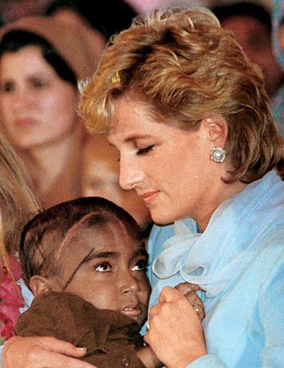 Vào tháng 2 năm 1996, Công nương Diana ôm một em nhỏ bị mắc bệnh ung thư tại Lahore, Pakistan.