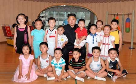 | Lãnh đạo Triều Tiên Kim Jong-un với các em nhỏ ở Nhà trẻ Kyongsang |