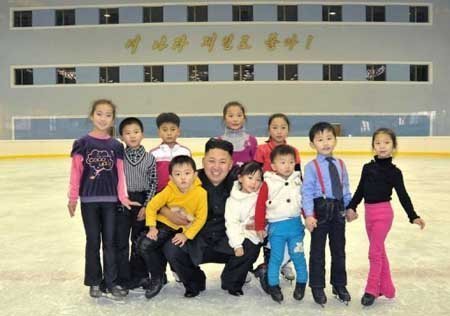 | Ông Kim bên các em nhỏ tại một sân trượt băng tại thủ đô Bình Nhưỡng. |