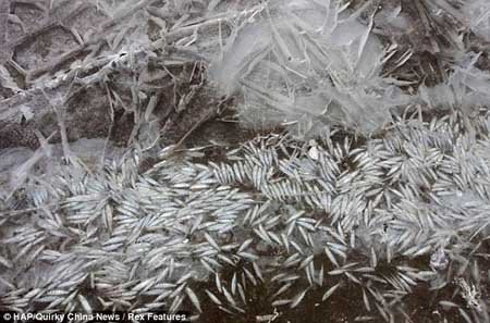 Vô số cá đã chết khi dòng sông đóng băng |