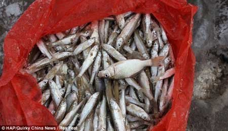 Người dân địa phương nhanh chóng tới lượm cá miễn phí |