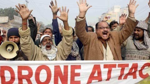 | Người dân Pakistan biểu tình phản đối các vụ không kích của máy bay không người lái Mỹ. (Ảnh: THX) |