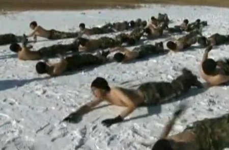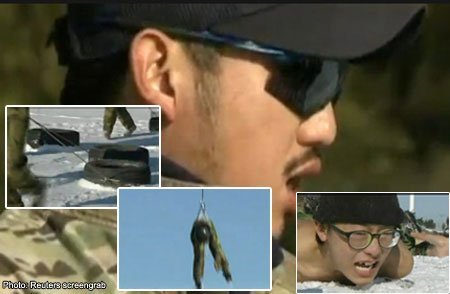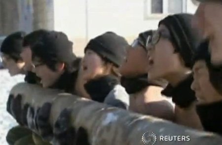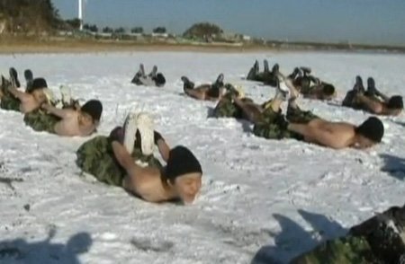 Không có manh áo nào trong thời tiết giá rét, bốn mươi học sinh Hàn Quốc đang được rèn luyện bằng kỷ luật nhà binh.