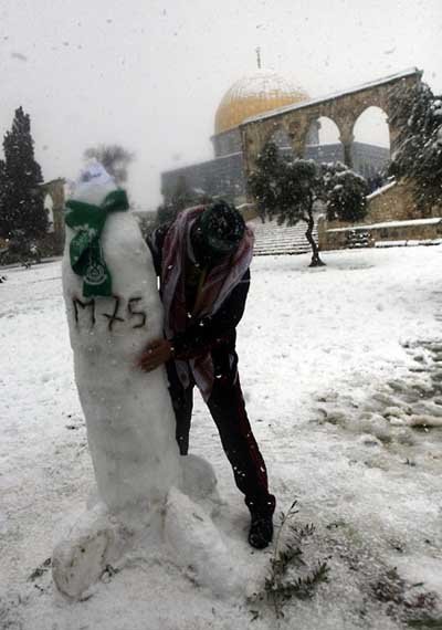 Người tuyết trong tưởng tượng của một cảnh sát người Palestine tại Ramallah. (Ảnh: APA)