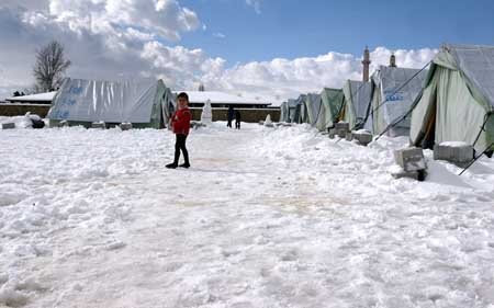 Bên ngoài những ngôi lều ở al-Marj, thung lũng Bekaa, Li-băng. (Ảnh: Reuters)