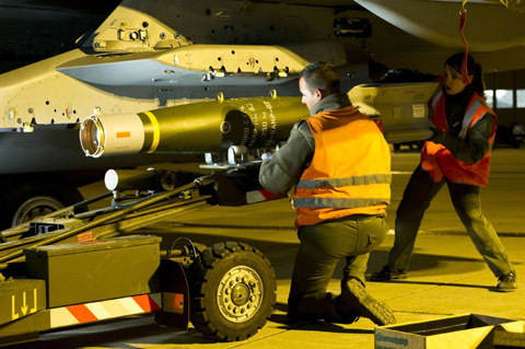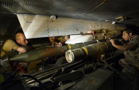 Một binh sĩ đang nạp tên lửa cho máy bay chiến đấu Mirage ở trại Kossei ở Chad.