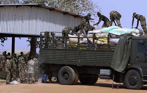Quân đội Nigeria chất hàng lên xe để chuẩn bị cho đợt triển khai ở Mali tại trung tâm gìn giữ hòa bình ở Jaji, gần Kaduna. Pháp cho biết, chiến dịch quân sự tại Mali sẽ kéo dài vài tuần.