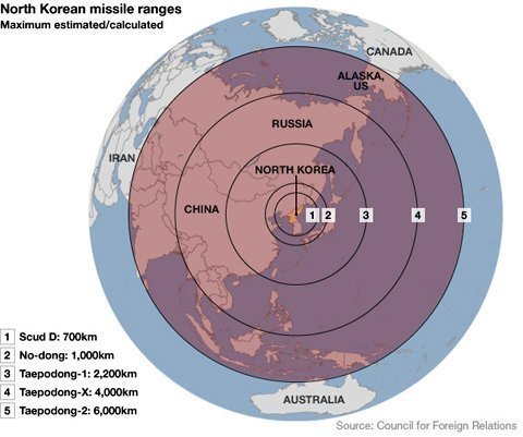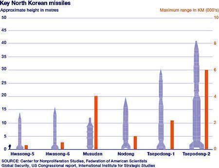 Với kho tên lửa đó, Triều Tiên rất có khả năng uy hiếp Hàn Quốc, Nhật Bản, Nga và thậm chí là tấn công Mỹ, Australia. Tuy nhiên, chất lượng hay độ chính xác và uy lực của các tên lửa này lại tỉ lệ nghịch với tầm bay của nó.