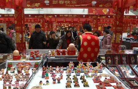 Các gian hàng Tết tại một trung tâm thương mại ở Bắc Kinh luôn tấp nập người mua.