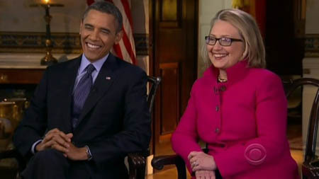 Tổng thống Barack Obama và Ngoại trưởng Hillary Clinton trong buổi phỏng vấn do đài truyền hình CBS thực hiện. (Ảnh: itv) |