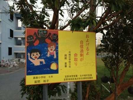 Một tấm biển cảnh báo nguy hiểm khi trẻ em bơi một mình.