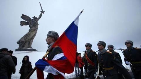 | Binh sỹ Nga diễu binh kỷ niệm 70 năm trận chiến Stalingrad ở Volgograd hôm 2/2. (Ảnh: AP) |