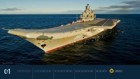 | Hải quân Nga đã trưng các loại vũ khí tinh nhuệ nhất của mình trong bộ lịch năm mới. (Ảnh: THX) |