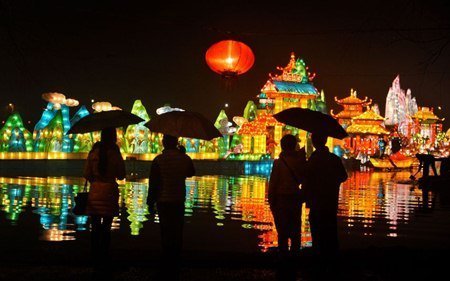 Du khách chiêm ngưỡng hoa đăng tại thành phố Phụ Dương, thủ phủ tỉnh An Huy, Trung Quốc. (Ảnh: AP)