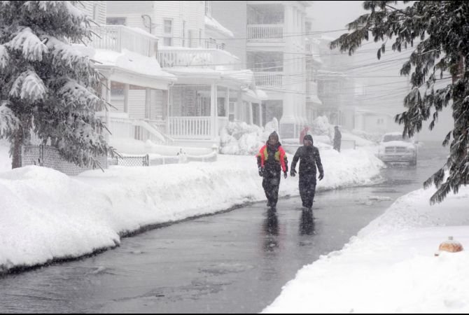 Từ Pennsylvania cho tới Maine, người dân ráo riết dự trữ thực phẩm, xẻng và các nguồn cung khác trong khi ngoài đường mọi người rắc muối và cát.