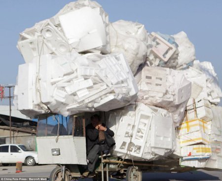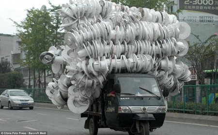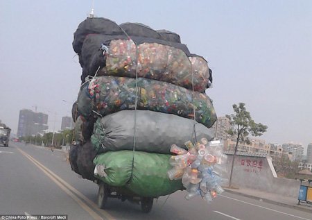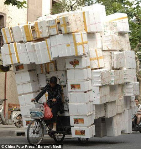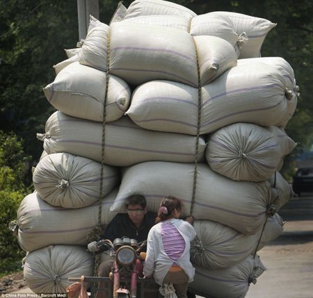 Mặc dù biết chắc là không an toàn nhưng nhiều tài xế Trung Quốc vẫn cố gắng chất thật nhiều đồ lên chiếc xe của mình trong lúc di chuyển trên đường phố.
