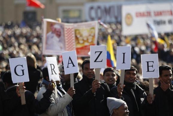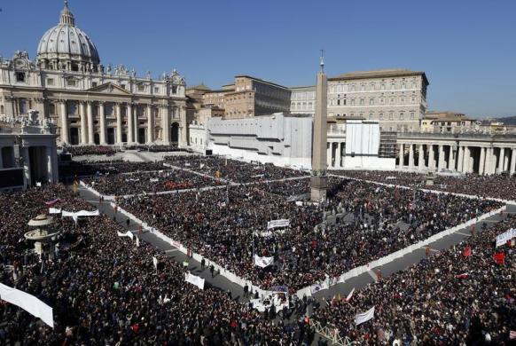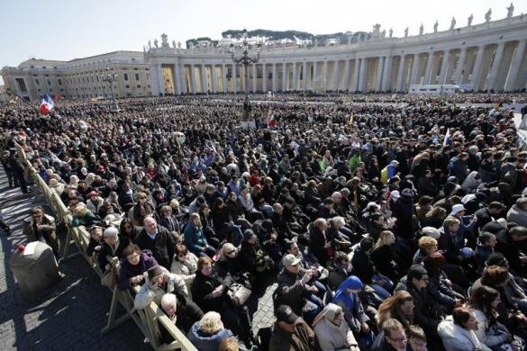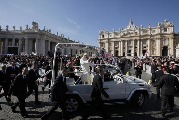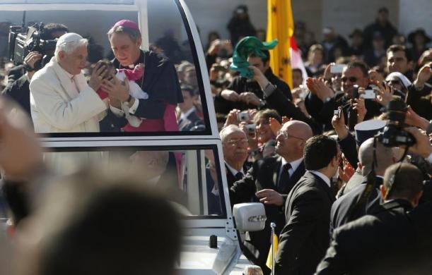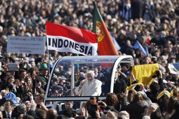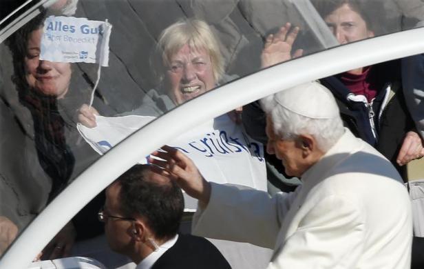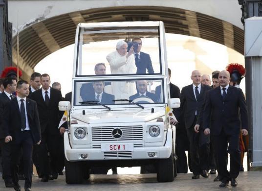Giáo hoàng Benedict XVI đã đi trên chiếc xe dành cho Giáo hoàng tại quảng trường Thánh Peter tại Vatican để chia tay các tín đồ trong buổi lễ ngày 27/2.