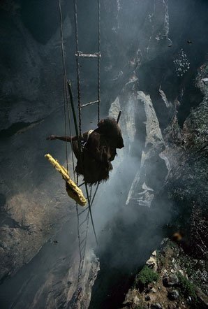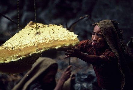 Họ thường thả thang hay dây từ đỉnh núi tới một khu vực phía dưới, nơi đốt lửa xua ong. Một "thợ săn mật" sau đó leo xuống và lượm những tầng sáp lớn chứa mật. Công việc nguy hiểm này sẽ giúp họ kiếm được tiền và lương thực khi trở về làng.
