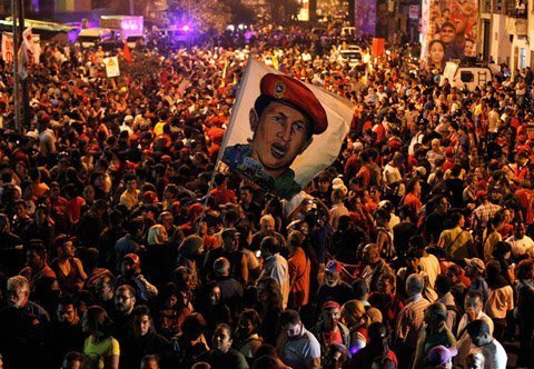 Nhiều người hô vang 'Chavez muôn năm' trên các đường phố. Những nhóm khác thì tuần hành ở các con phố lớn, giơ cao hình của ông Chavez.