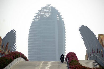 Một khách sạn "bảy sao" đang dang dở cho dù nó được cơ quan du lịch của tỉnh xem là "đối thủ cạnh tranh" của "kỳ quan thứ tám thế giới hiện đại". Cả hòn đảo tĩnh lặng, chỉ có vài công nhân vệ sinh đi lại, hồ bơi bên bãi biển như chưa từng có người động đến.