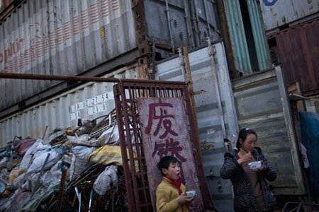 Những ngôi nhà nằm sát bãi phế liệu.