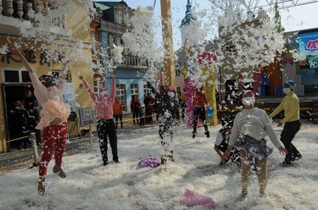 Người dân tại tỉnh Hồ Nam, Trung Quốc tham gia vào lễ hội ném gối, một hoạt động nhằm mang lại sự thoải mái cho người tham dự, đặc biệt là phụ nữ vào Ngày 8/3.