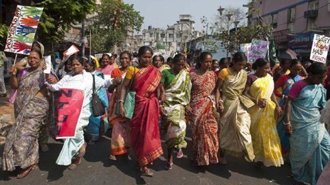 | Phụ nữ Ấn Độ tham dự cuộc tuần hành ở Calcutta nhân ngày Quốc tế Phụ nữ 8/3. (Ảnh: KCNA) |