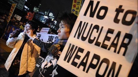 | Người Nhật biểu tình phản đối điện hạt nhân hôm 11/3, hai năm sau thảm họa động đất, sóng thần. (Ảnh: THX) |